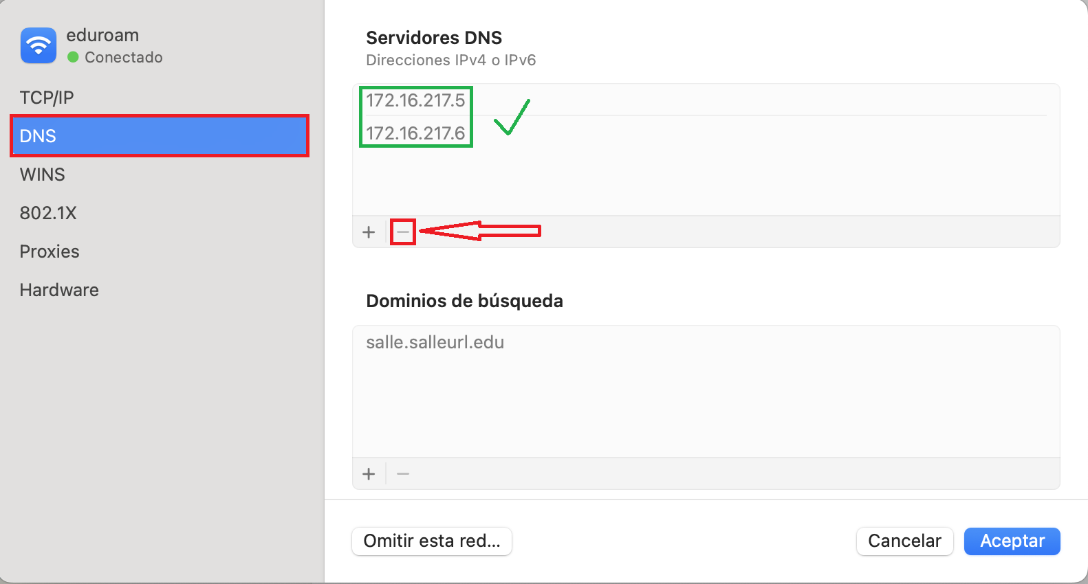 > Com configuro el DNS de LaSalle