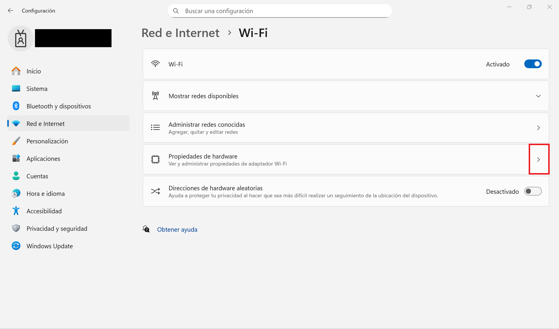 Clica a la icona de l'engranatge que apareix al costat de la teva xarxa connectada.