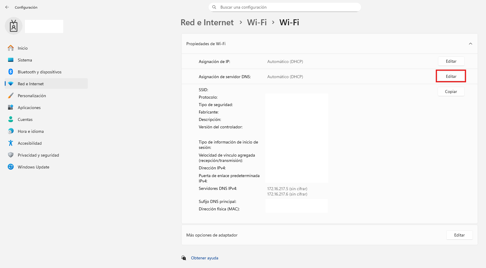 Busca l'opció DNS i posa l'interruptor en Automàtic.