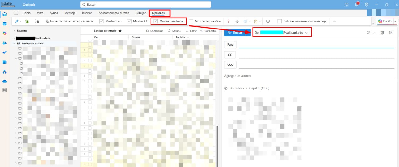 Accedint d'aquesta manera el camp De/From s'emplena automàticament amb l'adreça de la bústia compartida. És l'opció recomanada.
